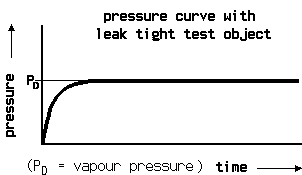 The test object is filled with 100% helium and placed under a belljar. The bell jar becomes evacuated by the helium leak detector. If a leak is present, wherever it is located, helium pures out and will be detected an displayed by the leak detector. The response time is given by the rest volume of the bell jar divided by the pumping effective pumping speed on the bell jar.