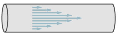 In the figure, the arrows symbolise the speed of the molecules. In the center of the pipe the speed is a maximum and it decreases towards the walls of the pipe.